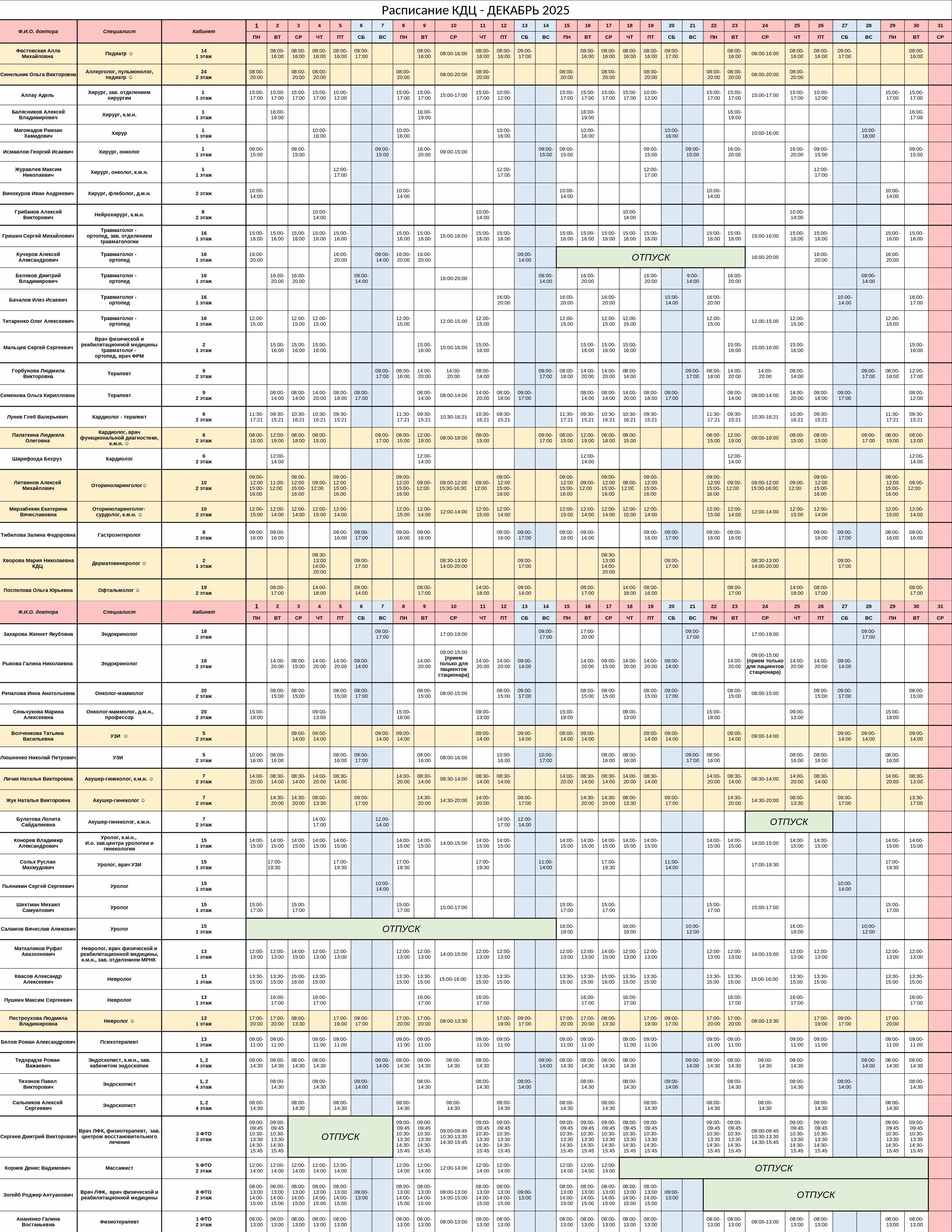 Актуальное расписание КДЦ Декабрь 2025 г.