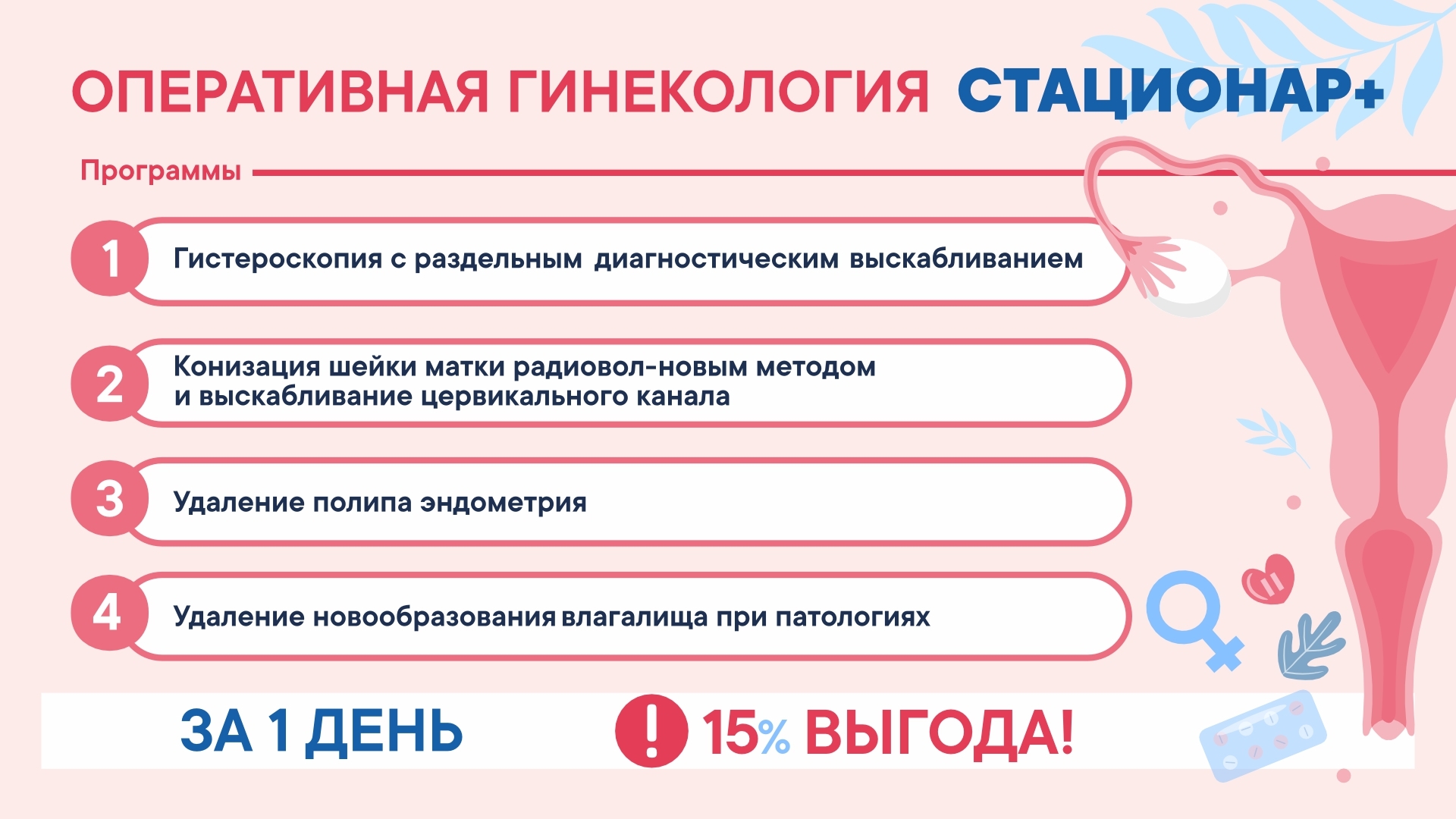 | 10 | Программа "Стационар+Удаление полипа эндометрия" | 34250 |